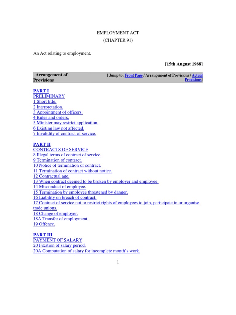 Home » library » legislation » employment act 1955 act 265 » table of contents.