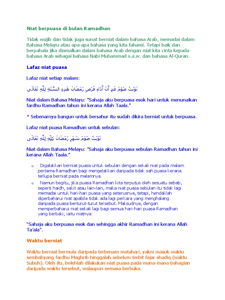 Lafaz Niat Puasa Sebulan Ramadhan : Adapun lafadz niat puasa ramadhan adalah pedoman yang bisa anda jadikan rujukan utama.. Di bawah dikongsikan lafaz niat puasa bulan ramadan harian dan sebulan, bacaan doa berbuka puasa serta informasi lain yang berkaitan untuk panduan umat islam. Sedangkan menurut pendapat malikiyyah cukup untuk menjamak (mengumpulkan) niat puasa sebulan di malam pertama bulan ramadhan. Kepentingan niat puasa di bulan ramadhan. Doa niat puasa bulan ramadan 2018 untuk esok hari untuk. Sebab menurut jumhur ulama selain madzhab syafi'i, makan sahur sudah dianggap niat puasa ramadhan, kecuali saat makan sahur berniat tidak puasa.